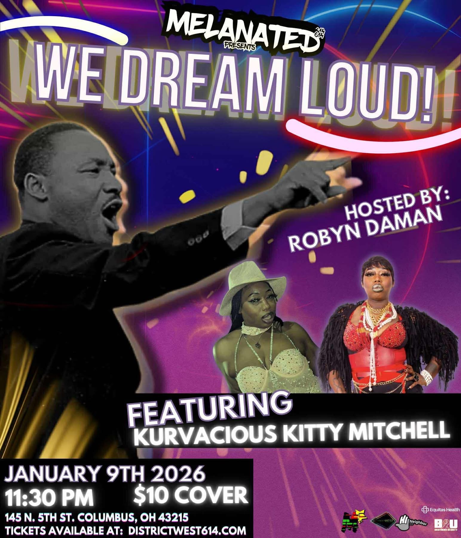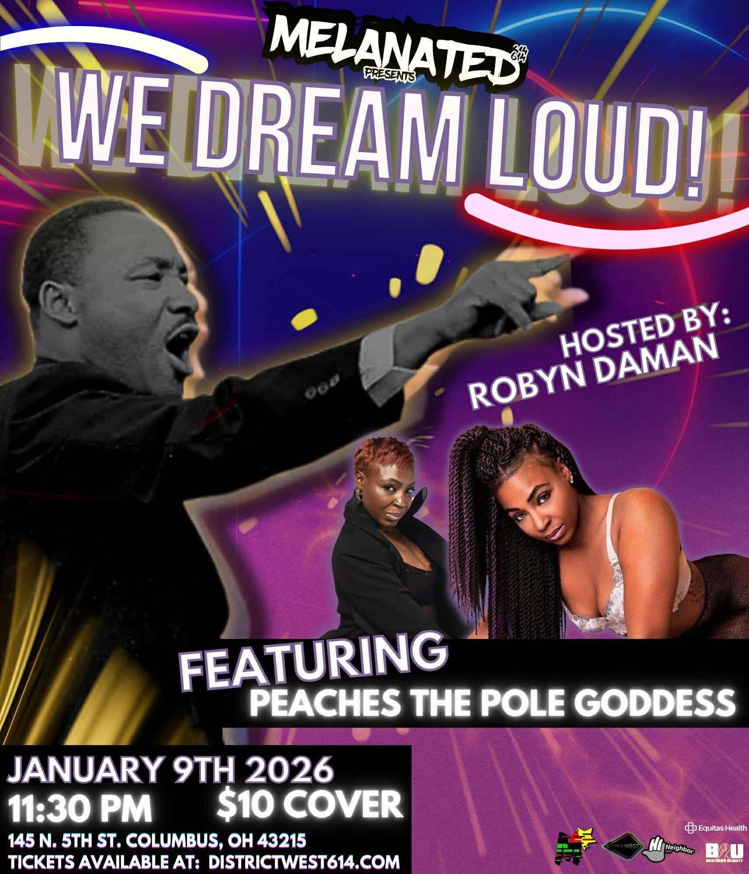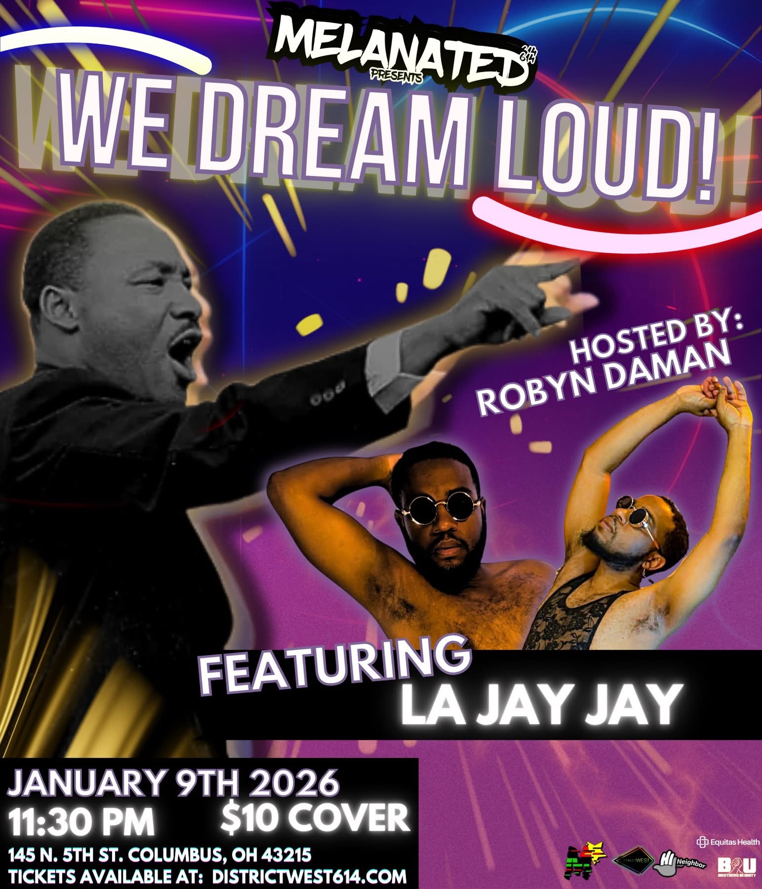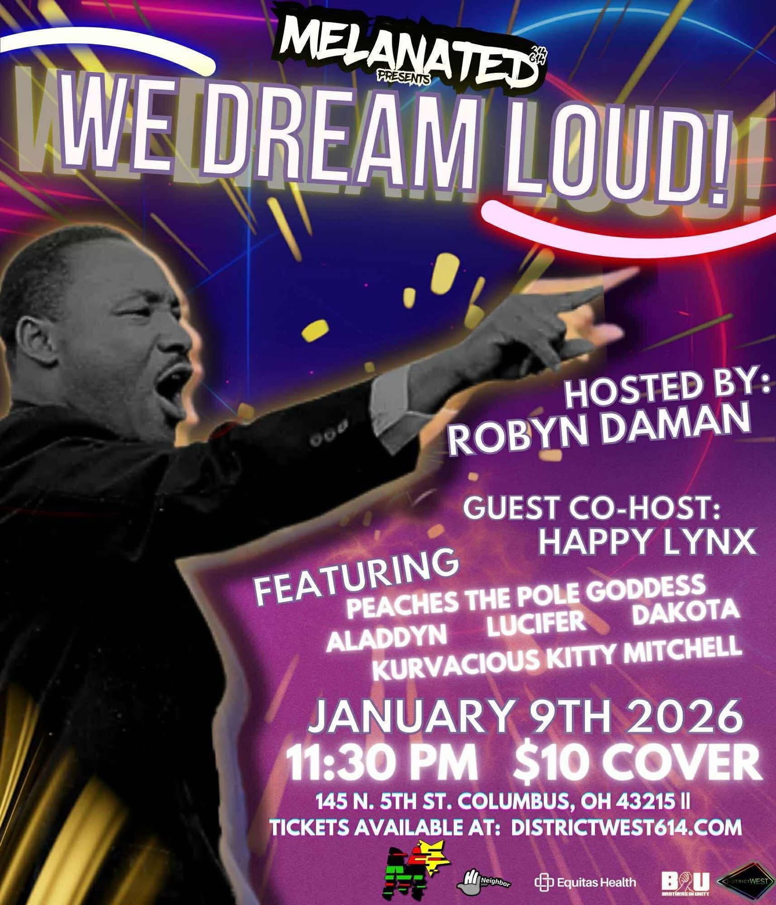 Melanated: We Dream Loud! by districtwest614 January 9, 2026 11:00 pm 145 N 5th St. Columbus,OH Support the only fully always Black show in Ohio Robyn DaCultyre is serving up “that Melanin” with a fully Black Entertainer showcase. Showtime 11:30pm . $10 Cover . 18+ with valid ID